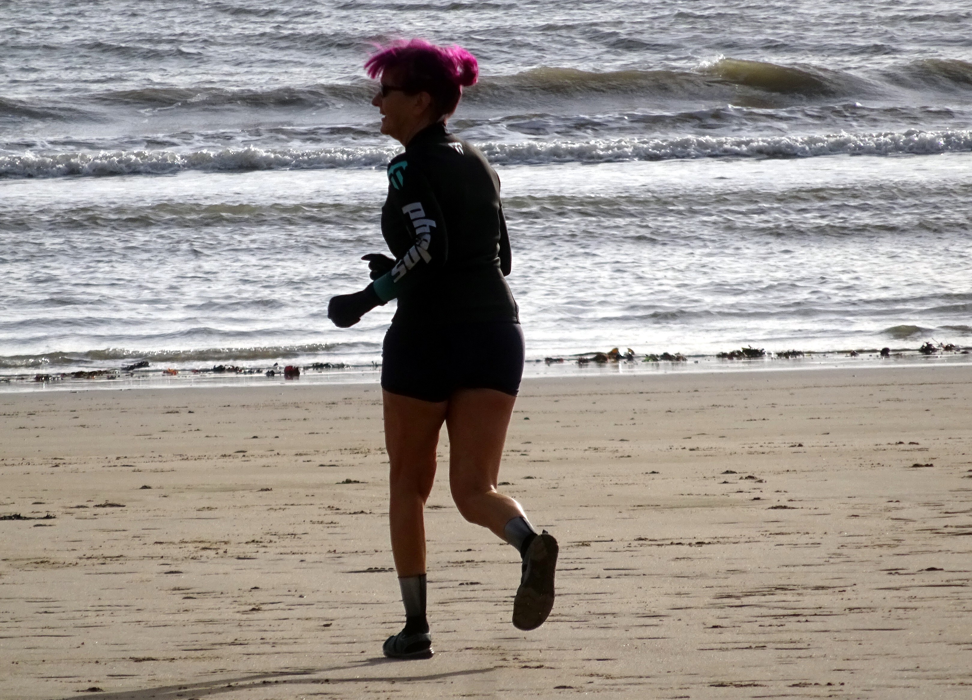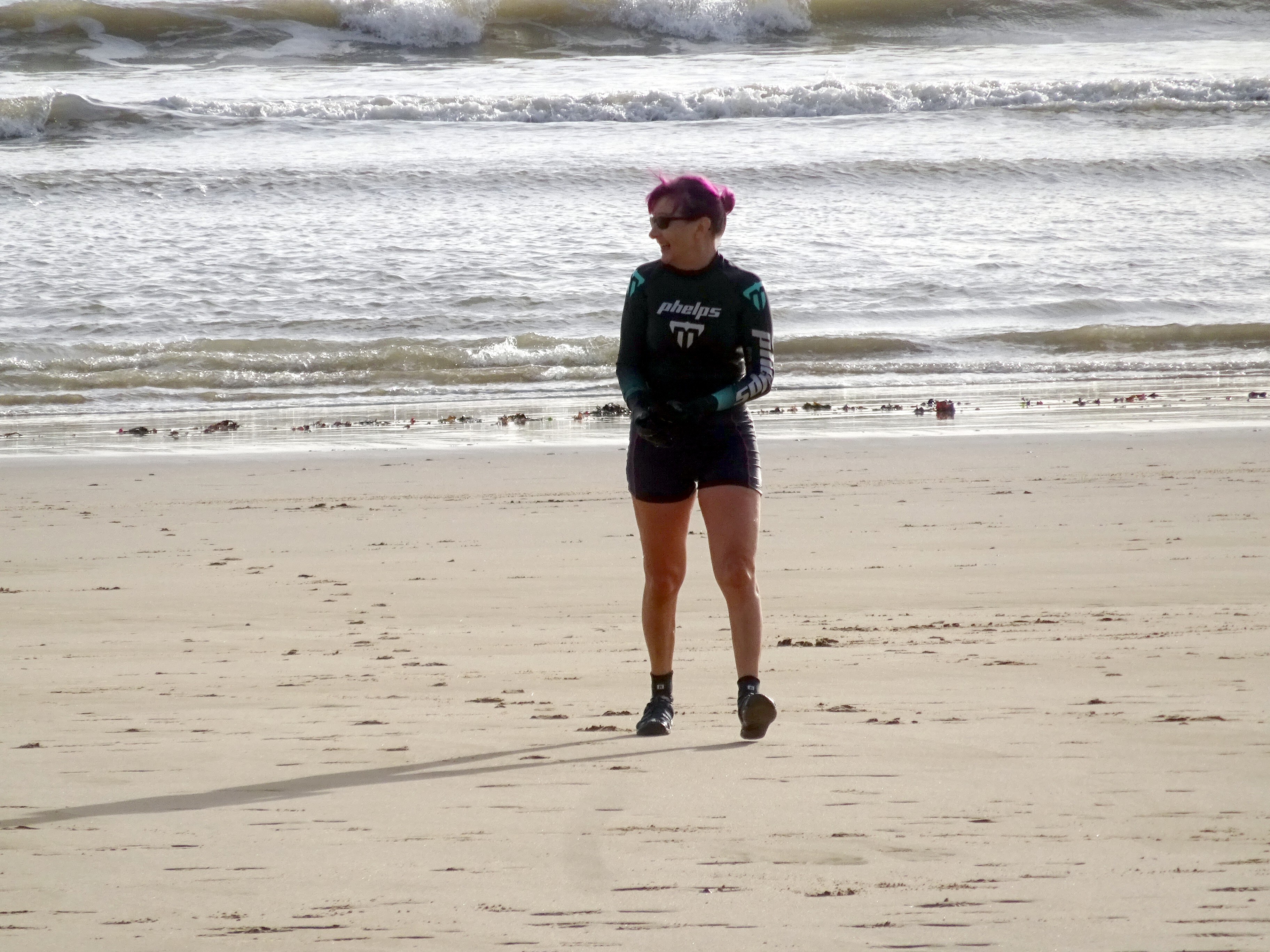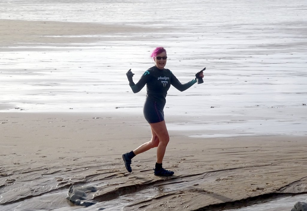 I’m just getting used to the idea of going in the sea in November. I have some doubts about my sanity. I’m not quite sure why as I used to water ski on the river Trent on Boxing day – I was about 18 then tho. Also, I did a stint as a lifeguard on Langold lake, north Notts., at around about the same time. Also, I got dunked in the sea one February, a couple of years ago, by Frank when he tripped over his own legs at Oxwich. The sea did not feel cold at all then but when you’ve got half a ton of horse thrashing around you and you think you might die, then being cold is the last thing on your mind. Wonderful thing adrenaline- it takes all the pain (and cold) away in situations like that. Still….it does feel a bit weird to be walking into the sea when everyone else on the beach is wearing hats and scarves….