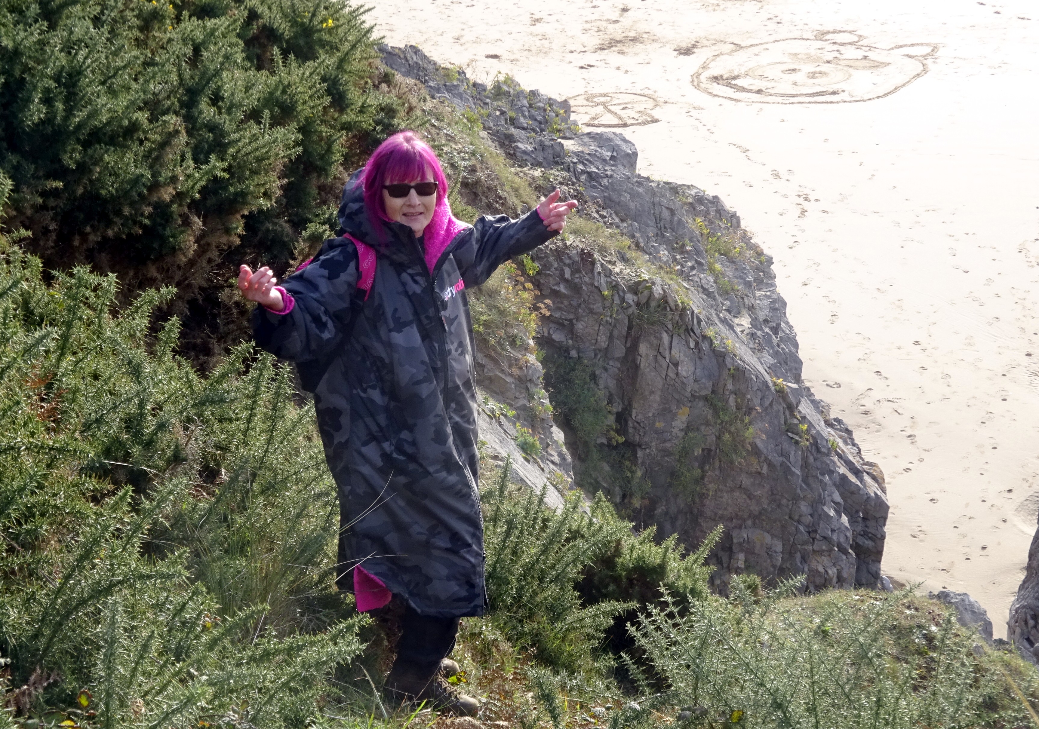 Also, I’m aware of my age…I’m 64…I’ve got high blood pressure…. I know I’m a risk taker so I can’t always trust my own judgement- I think I’ve been very lucky so far. .. I had a good swim yesterday…. I would have stayed in longer maybe if someone had been swimming with me. The only bit that felt cold was my shoulders …. I didn’t feel cold anywhere else. Getting out…getting dressed… Well I’ve felt MUCH colder on the beach at Skeggy as a kid… I felt great after. I think I’m probably much more likely to kark it walking up that long steep path from the beach to the cliff tops, where the car was parked. My little charity shop ruck sack full of wet cozzie, neoprene long sleeve top,gloves , socks, sea shoes and damp towel… my huge fluffy dry robe which was so welcome on the beach is now a bag I am boiling in… Eeeeesh! Once home its a tin of soup, cheese on toast, and a drink of kefir. Bed and instant sleep.