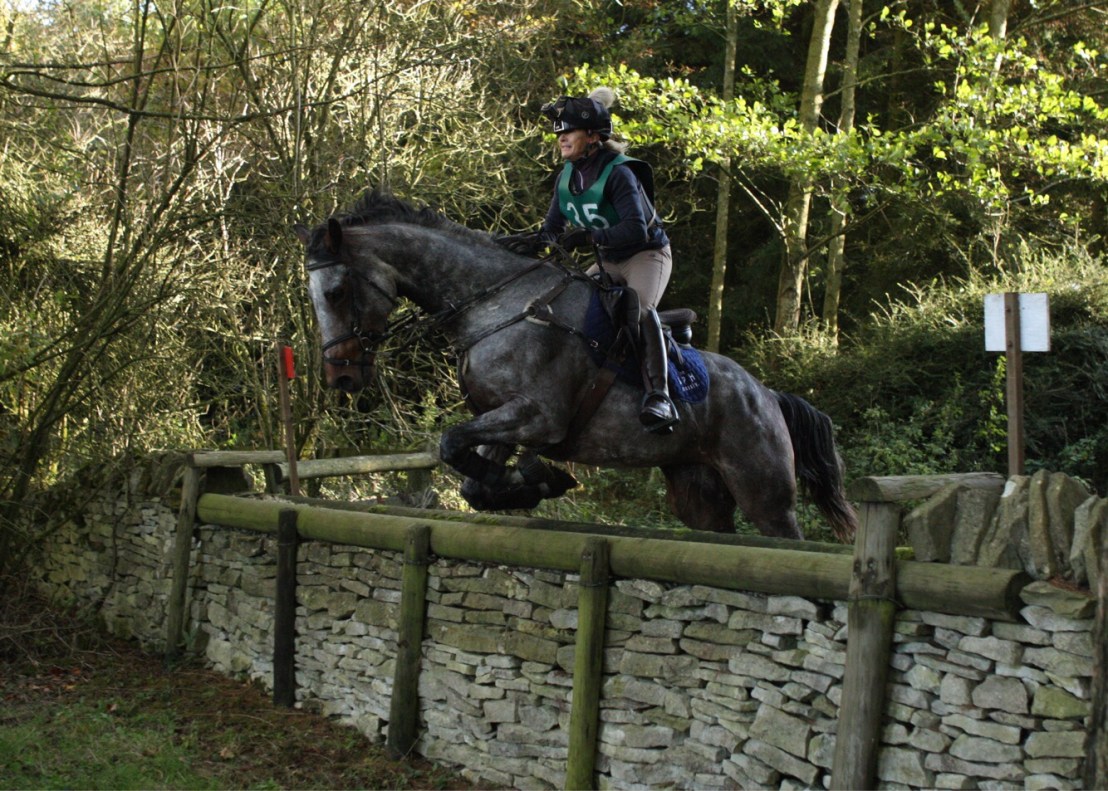At last, we were asked to go down to the start and after couple of nervous circuits we were off. Amber shot off like an arrow and Frank followed and went from 0 to flat out in about 2 seconds. I have no idea what the first two fences even looked like although I think the third was a wall. Sharp curve left to the fourth a drop wall and Frank is going even faster. Downhill curve to the right, fence five is another wall, and Frank is flying. In between five, and six a hedge, Fox comes upsides only he’s on his own. As we career down to six Fox starts to cut across me but actually jumps it with us